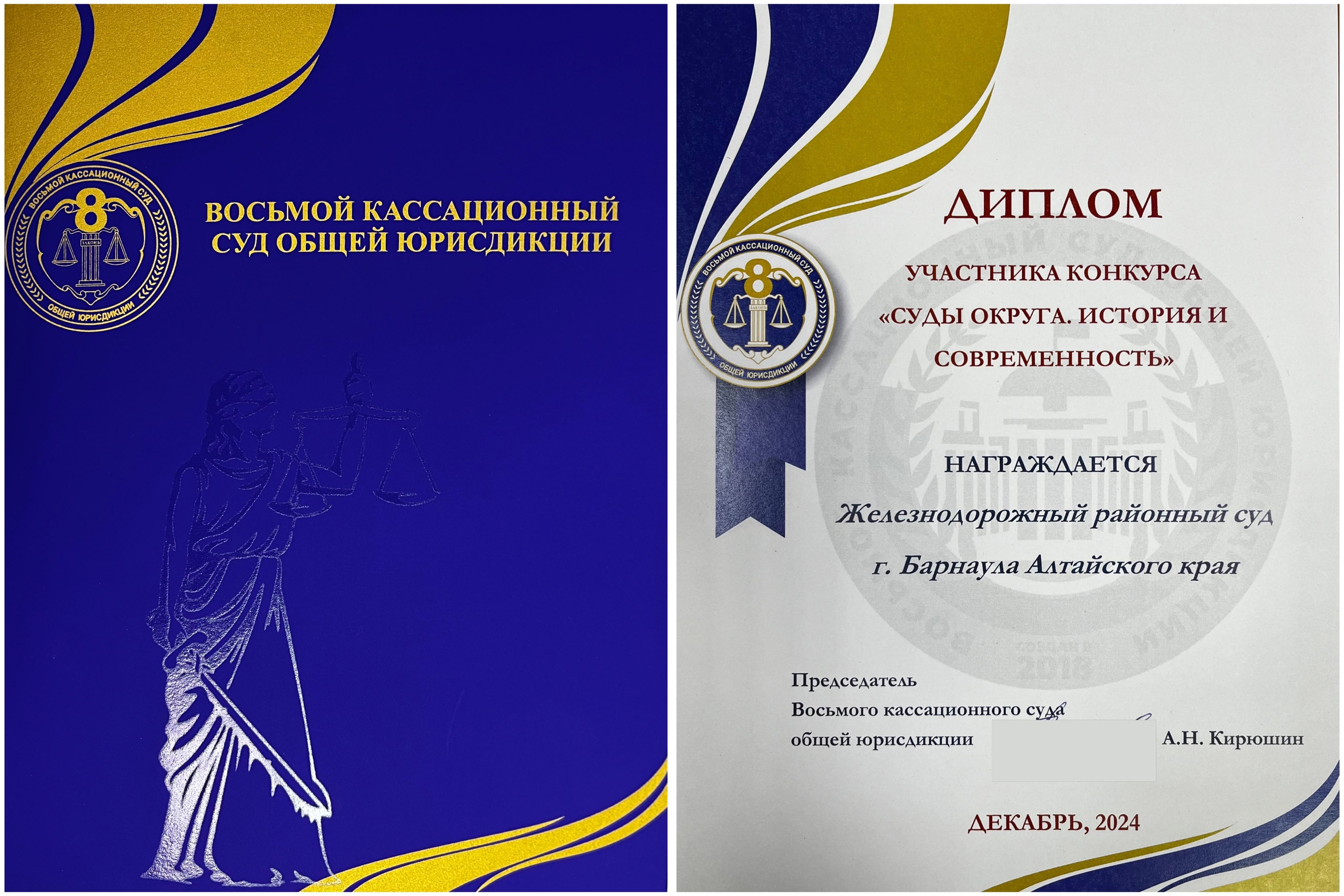 По итогам конкурса "Суды округа. История и современность" Железнодорожный районный суд г.Барнаула награжден дипломом участника.![]() |